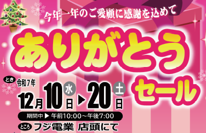 フジ電業では下記の期間「ありがとうセール」を開催いたします。